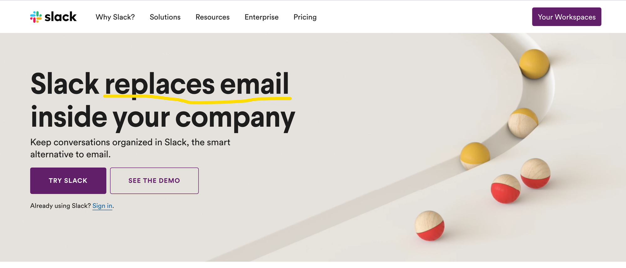 Letās take the example of Slack. Slack used to position itself against email. This told users in few words how this is different from what they were used to. It also showed the value.